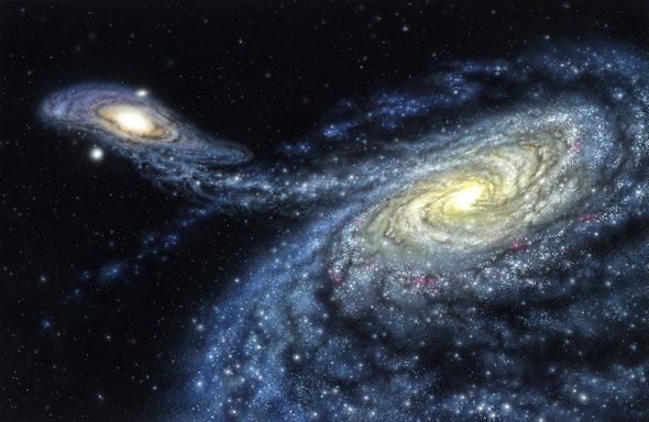 Mr Cain said: “Panic will happen when the Milky Way collides with Andromeda in about 4 billion years. “Suddenly, you’ll have two whole clouds of stars interacting in all kinds of ways, like an unstable blended family. “Stars that would have been safe will careen past other stars and be deflected down into the maw of either of the two supermassive black holes on hand. Andromeda’s black hole could be 100 million times the mass of the Sun, so it’s a bigger target for stars with a death wish.”